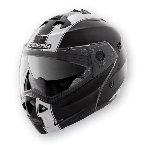 Duke è il nuovo casco apribile di casa Caberg 100% made in Italydal design accattivante e dalle soluzioni tecniche innovative. Frutto dell’esperienza maturata dalla prima azienda italiana ad aver prodotto caschi apribili, Il nuovo Duke è dotato della doppia omologazione P/J che permette di guidare anche a mentoniera alzata sempre in sicurezza grazie al selettore posizionato sulla sinistra del casco che, nella posizione J, blocca la mentoniera nella posizione di massima apertura evitando così la chiusura accidentale della stessa. Grazie alle ridotte dimensioni del casco, il peso del nuovo Duke è di solo 1550 +\-50 gr.
